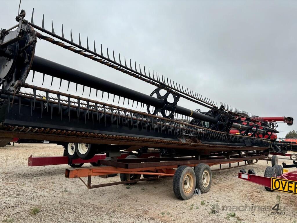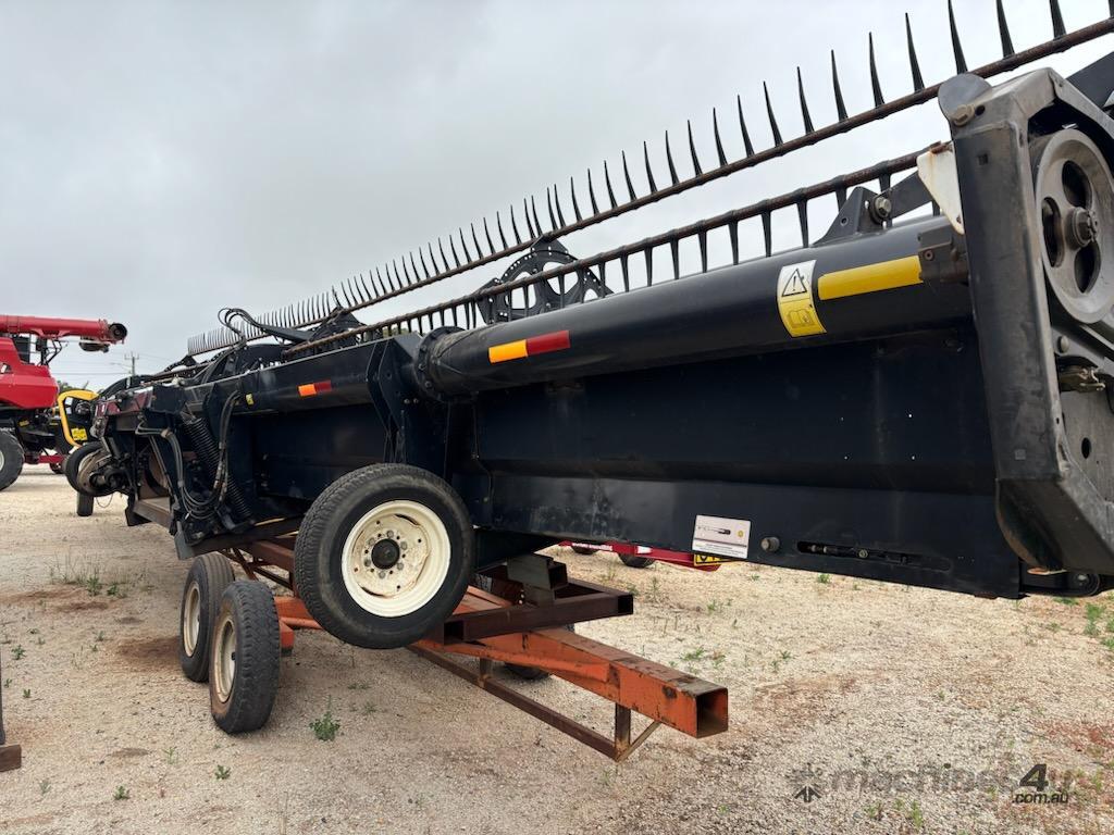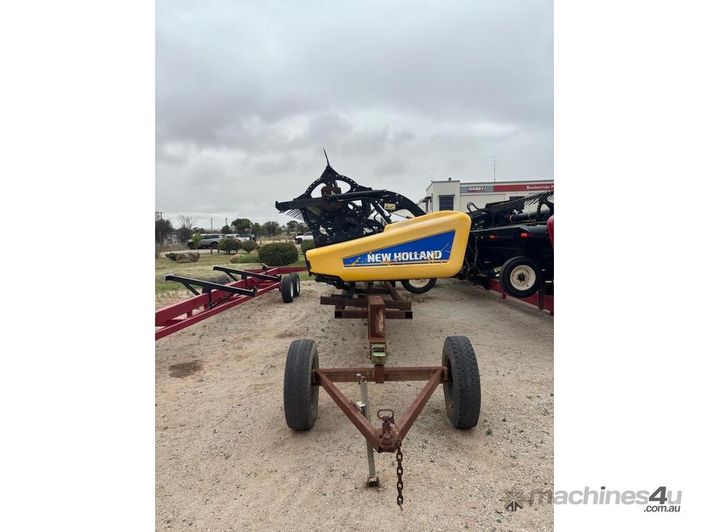 New Holland 83C draper front. MY2012. 45' cutting width. Full length canola top cross auger. MY2016 CA25 centre adaptor with TurboDrum fitted. Hydraulic top link. Comb trailer with walking beam axle and goose neck.