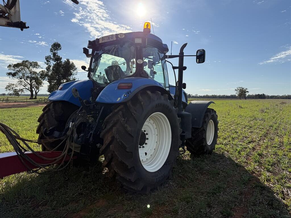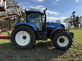 2012 NEW HOLLAND T7250 4879 hrs. All new BKT tyres, front, rear. FM750 guidance. Front axle suspension. 50km/hr CVT transmission. Driving lights. Front weights. Has been used for 15t chaser bin and as a spray tractor. All ISO included in sale. Will be serviced by West Wyalong Machinery Centre prior to auction. *Please note Hardi control box will be removed prior to collection. Located Naradahan, NSW.