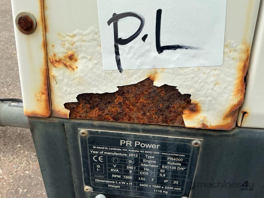 CP: 06/2012,PR Power,PR4000,Single Axle Light Tower Trailer,Hubometer not visible,Colour: White,Rego. No: NP(1UAI172), Unregistered WA,VIN: ZA9VT1B0012H77046,Serial No: NULL,Sold with No Plates