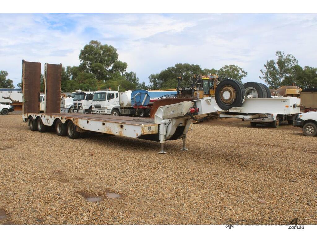 2012 Model, 60T ATM, 11m Deck, Deck Widens To 3.45m, Bi-Fold Rams, 4m Goose Neck, Diesel Hydraulic Power Pack, Tool Boxes, Spare Tyres, Rear Steer Axles, Disc Brakes.