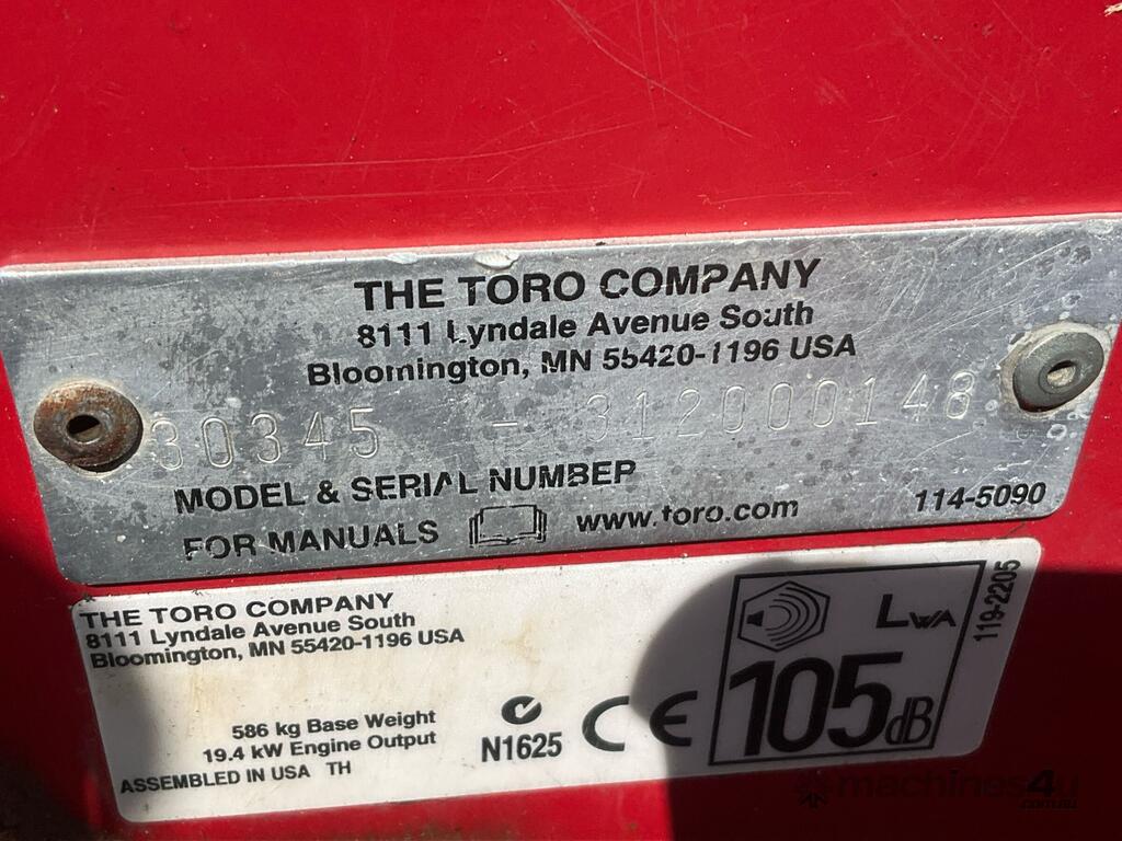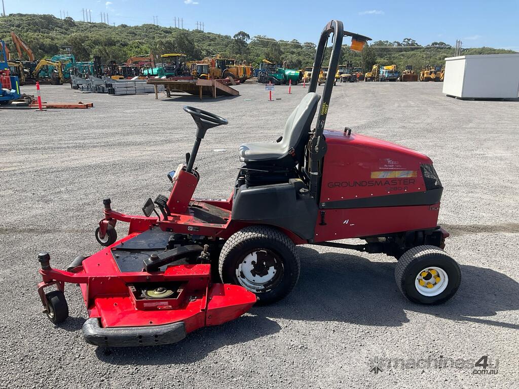 CP: CIRCA 2012,Toro,Groundmaster 3280D,Ride On Mower (Out Front),Engine #: BG9996,3 Cyl,Diesel,Odometer not visible,1265 (Hrs. Showing on Hour meter),Colour: Red,Unregistered,Serial No: ,Sold with No Plates,Key No: 301E