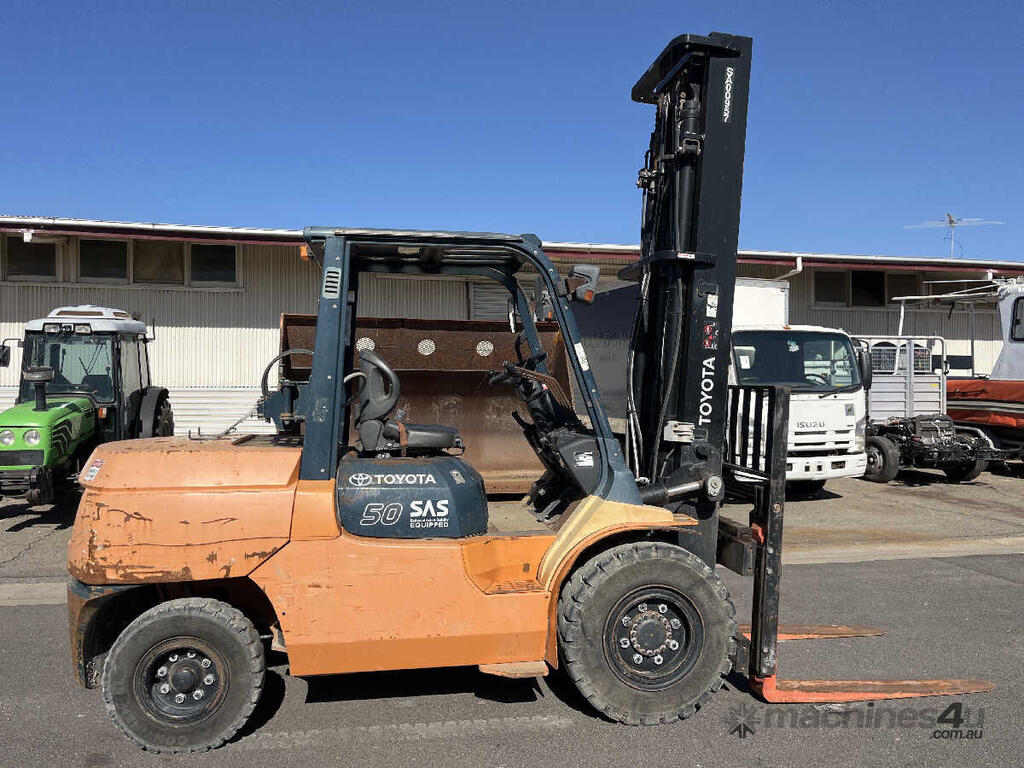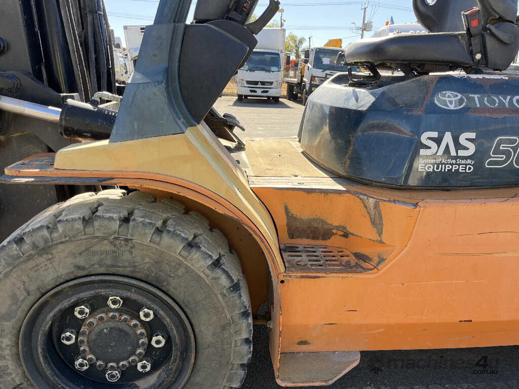 CP: CIRCA 2012,Toyota,02-7FGA50,Forklift,6 Cyl,Petrol & LPG (Dual),Odometer not visible,Hourmeter not visible,Colour: Yellow,Unregistered,Serial No: 51592,Sold with No Plates