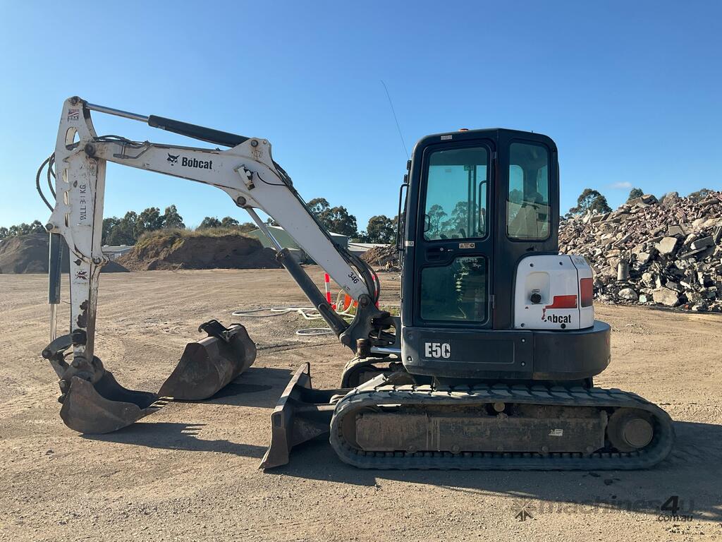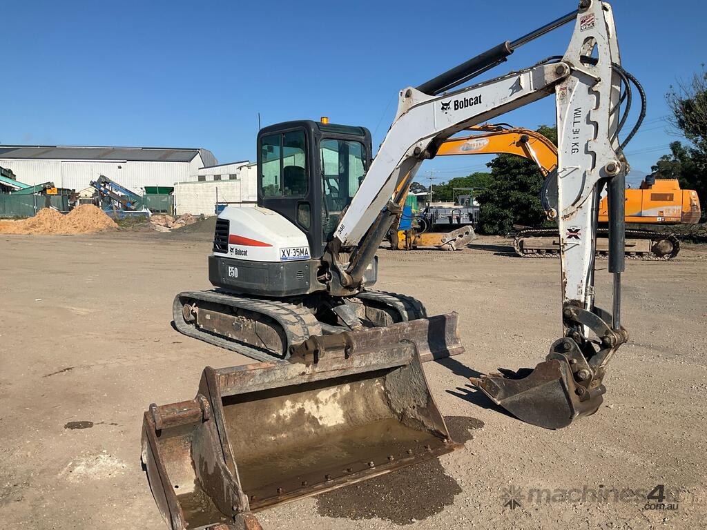 CP: CIRCA 2013,Bobcat,E50,Excavator,4 Cyl,Diesel,Odometer not visible,2845 (Hrs. Showing on Hour meter),Colour: White,Rego. No: NP(XV35MA), Unregistered,Serial No: AG3N13437,ROPS No: undefined,Sold with No Plates