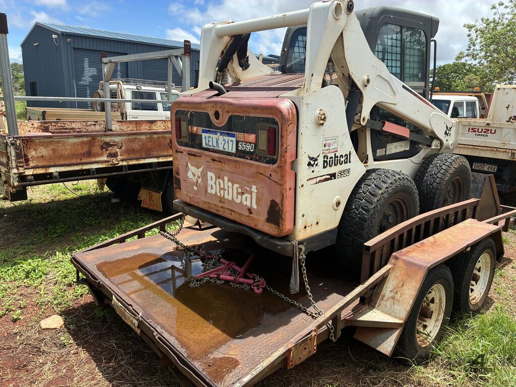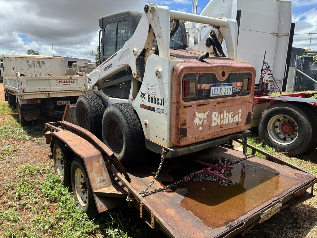 CP: CIRCA 2013,Bobcat,S590,Wheeled Skid Steer & Trailer Combination,Odometer not visible,1722 (Hrs. Showing on Hour meter),Rego. No: 1ELK217 WA,VIN: 6A4T20C0JPT027612,Serial No: ANMN13492,Sold with No Plates
