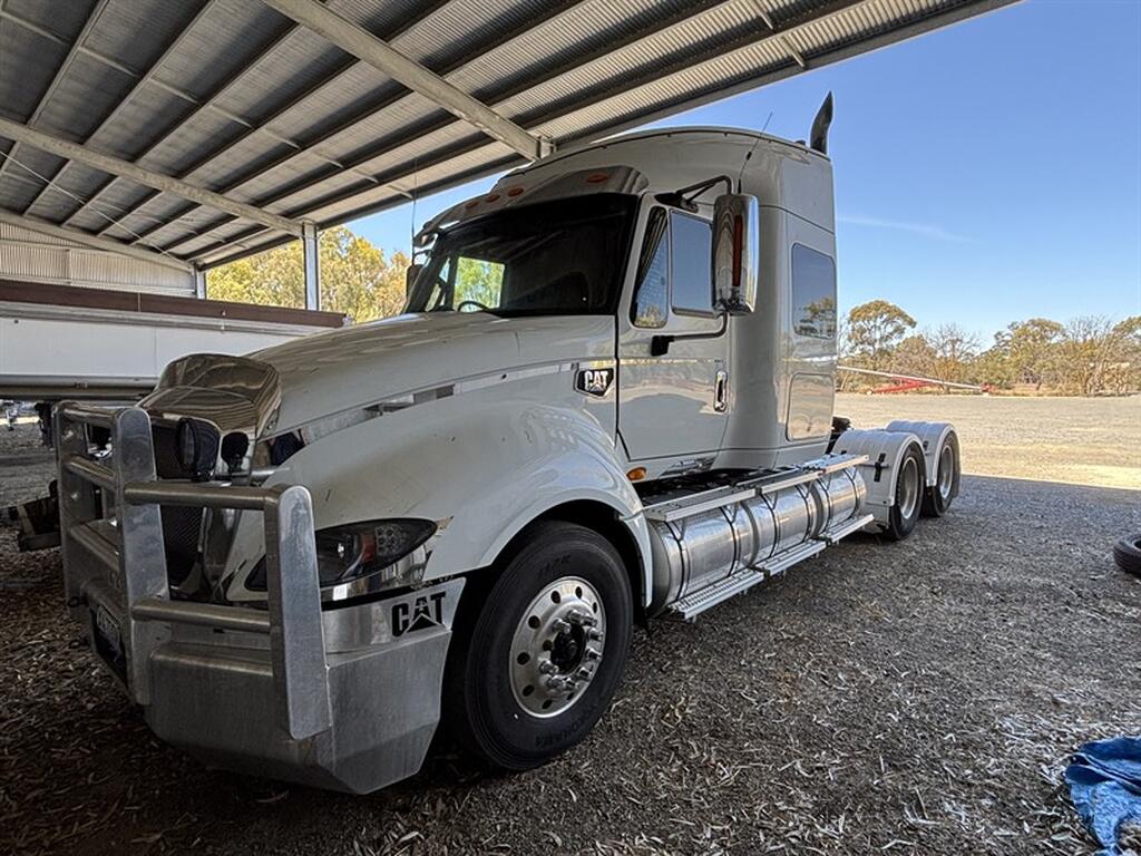 2013 CAT CT630, VIN 1HSJRSCR4EH781668, genuine 825 556 kms, C15 Acert, 18 speed Roadranger, Hendrickson air suspension, Meritor 4.10 diffs, PTO hydraulics with remote tipper control, Autoclima bunk cooler, 90t rated, preseents well, last registered Nov 2025, located Horsham VIC