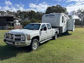 2013 CHEVROLET SILVERADO 3500HD LTZ UTE WITH 2010 FOREST RIVER WILDCAT 25RLAU GOOSENECK CARAVAN, VEHICLE VIN: 1GC4K1E87EF124738, E/N: 1565737, 96,734 KM SHOWING, REGISTRATION EXPIRES 18/10/2025, CURRENT COI, TRAILER VIN: 4X4FWCA27BT010918, REGISTRATION EXPIRES 18/10/2025. LOCATION: NEBO, QLD 4742. INSPECTIONS & COLLECTIONS: BY APPOINTMENT ONLY. ENQUIRIES: JOHN MCDOUGALL ON OR JOHNEMERALDAUCTIONCENTRE