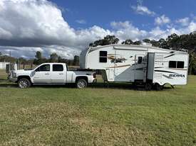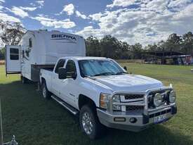 2013 CHEVROLET SILVERADO 3500HD LTZ UTE WITH 2010 FOREST RIVER WILDCAT 25RLAU GOOSENECK CARAVAN, VEHICLE VIN: 1GC4K1E87EF124738, E/N: ####, 96,734 KM SHOWING, REGISTRATION EXPIRES 18/10/2025, CURRENT COI, TRAILER VIN: 4X4FWCA27BT010918, REGISTRATION EXPIRES 18/10/2025, LOCATED NEAR NEBO, QLD 4742.