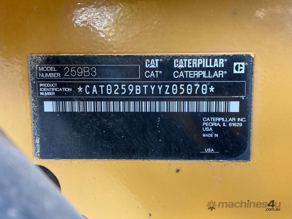 CP: CIRCA 2013,Caterpillar,259B3,Skid Steer (Rubber Tracked),4 Cyl,Diesel,Odometer not visible,2911 (Hrs. Showing on Hour meter),Colour: Yellow,Unregistered,VIN: CAT0259BTYYZ05070,Serial No: YYZ05070,ROPS No: undefined,FOPS No: undefined,Sold with No Plates,Key No: 205