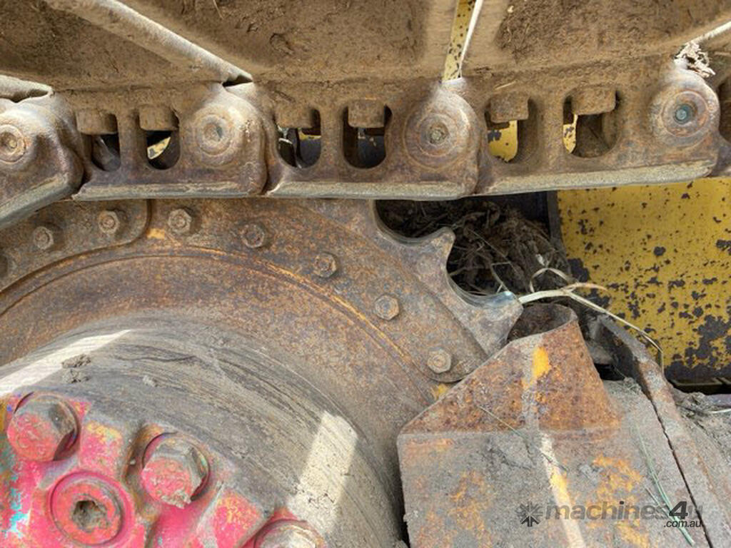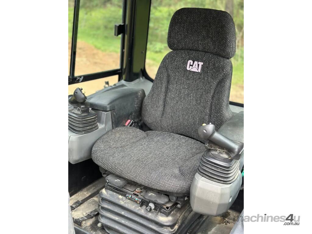 Cat C4.4 ACERT engine (around 74-81 hp), designed with wide tracks (25-inch shoes) for minimal ground pressure (around 4.3 psi) and stable operation in soft conditions, offering speeds up to 5.6 mph forward and weighing roughly 17,842 lbs, known for its comfortable cab and efficient SystemOne undercarriage.