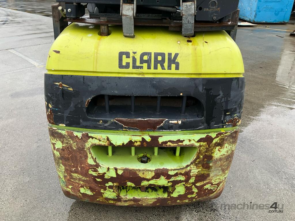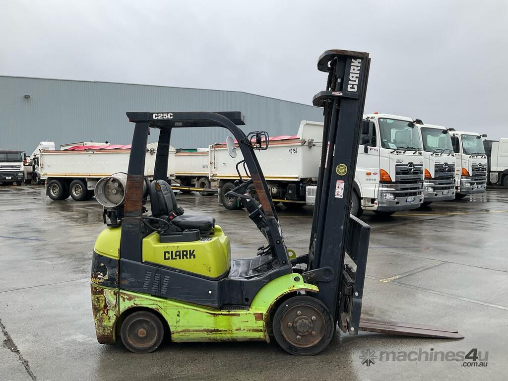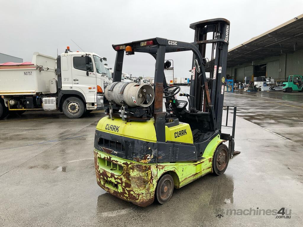 CP: CIRCA 2013,Clark,C25CL,Forklift,4 Cyl,LPG only,Odometer not visible,4711 (Hrs. Showing on Hour meter),Colour: Green,Unregistered,Serial No: C232L-0003-9854,Sold with No Plates,Key No: 40