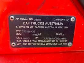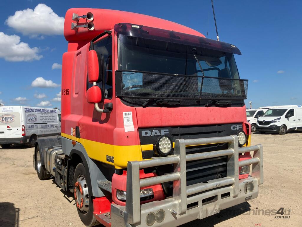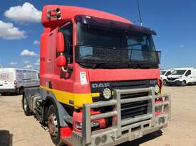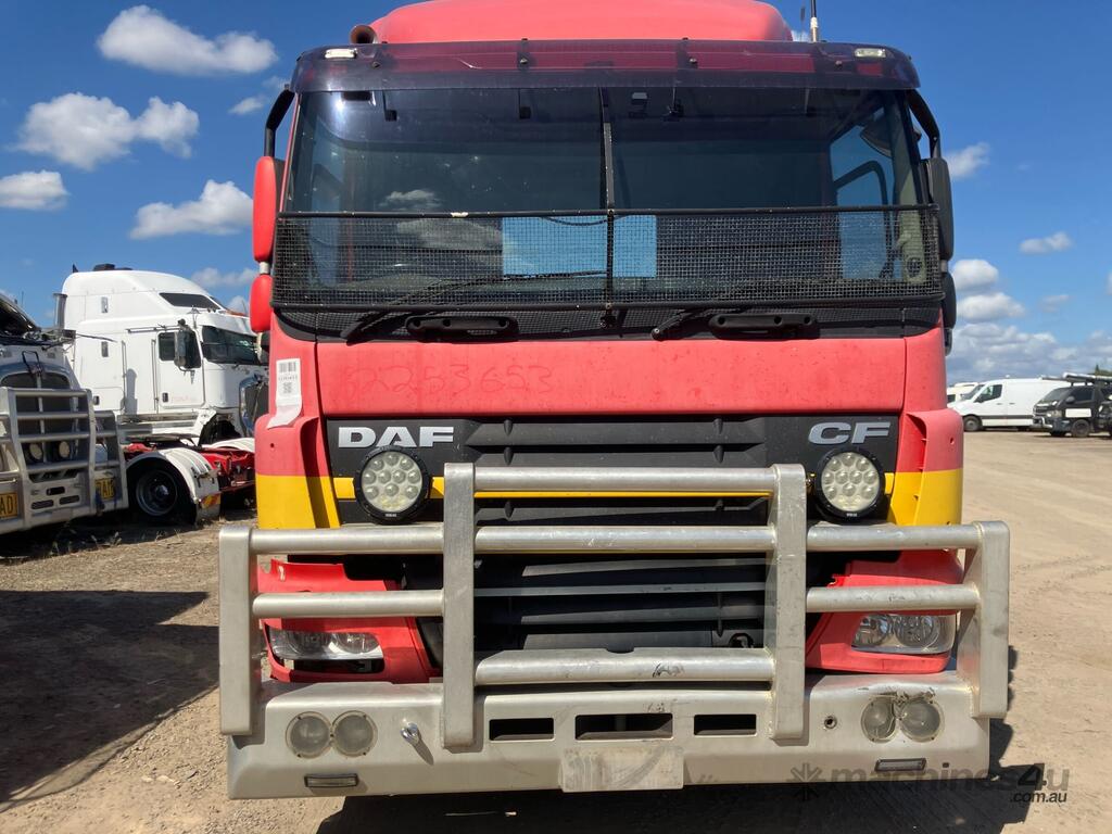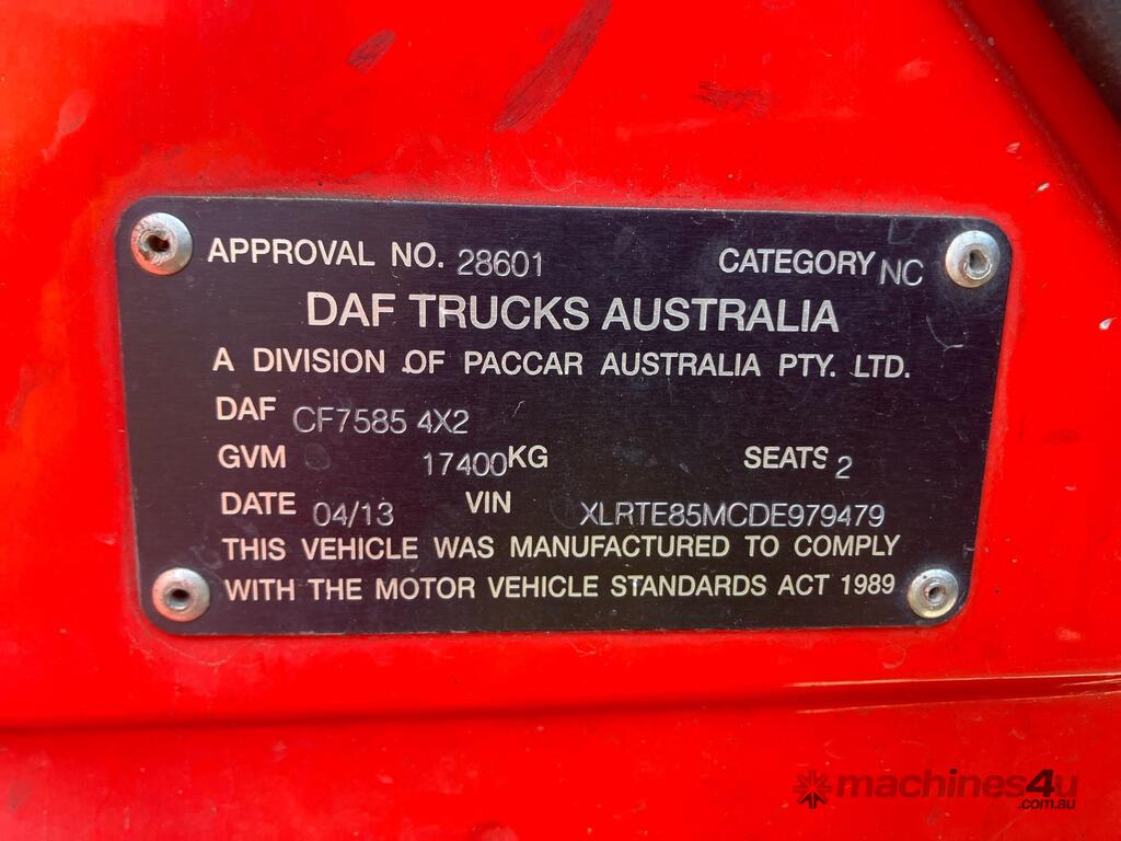 CP: 04/2013,DAF,CF85.460,Prime Mover,Automatic,airbag,6 Cyl,Diesel,1257681 (Kms. Showing on Odometer),Hourmeter not visible,Colour: Red,Unregistered,VIN: XLRTE85MCDE979479,Length: 6 m,GVM: 17400,GCM: 45000,Sold with No Plates,WOVR Status: WOVR N/A,Incident Type: Not Applicable