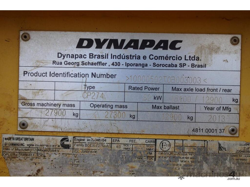 2013 Model, 3443 Hours, Air Rops Cabin, 27 Ton roller, Wheel Scrapers, Ballast Tanks, E-Stops, Isolator, Good Tyres, Cummins Engine.