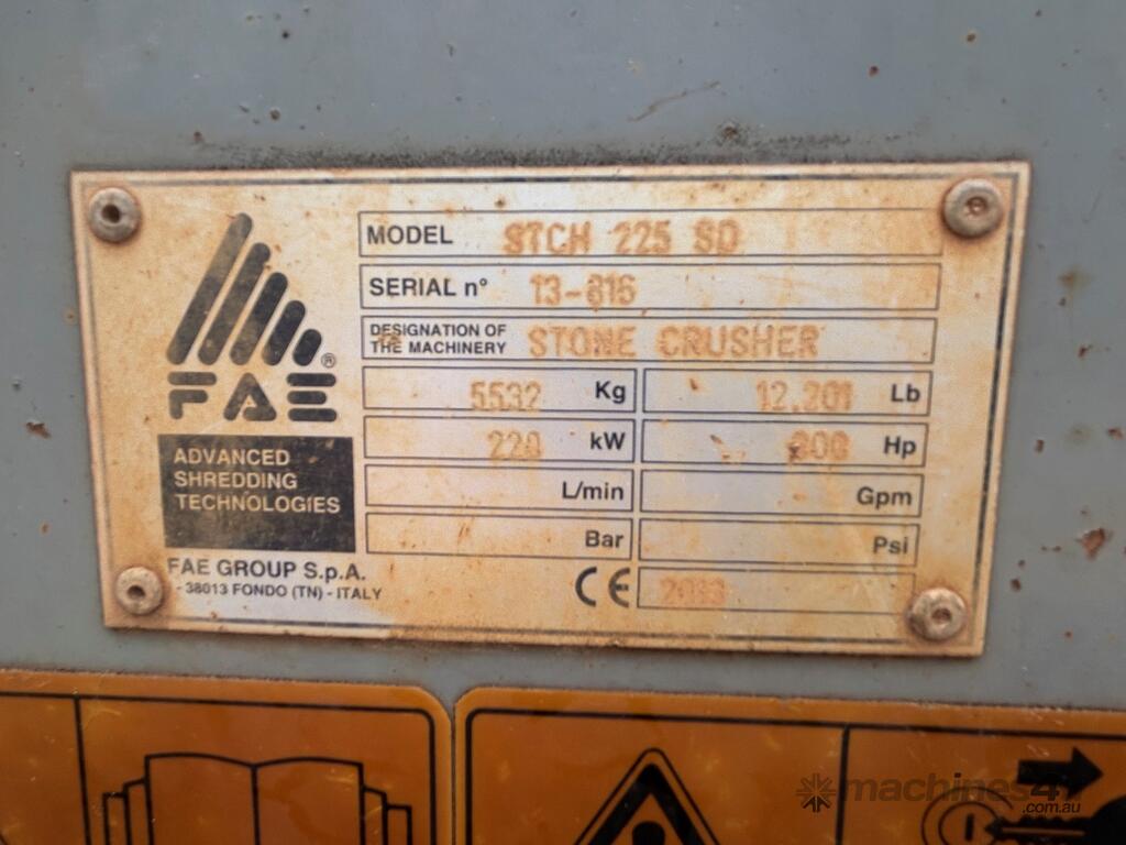 CP: CIRCA 2013,FAE,STCH 225 SD,Stone Crusher,Odometer not visible,Hourmeter not visible,Colour: Grey,Unregistered,Serial No: 13-816,Sold with No Plates