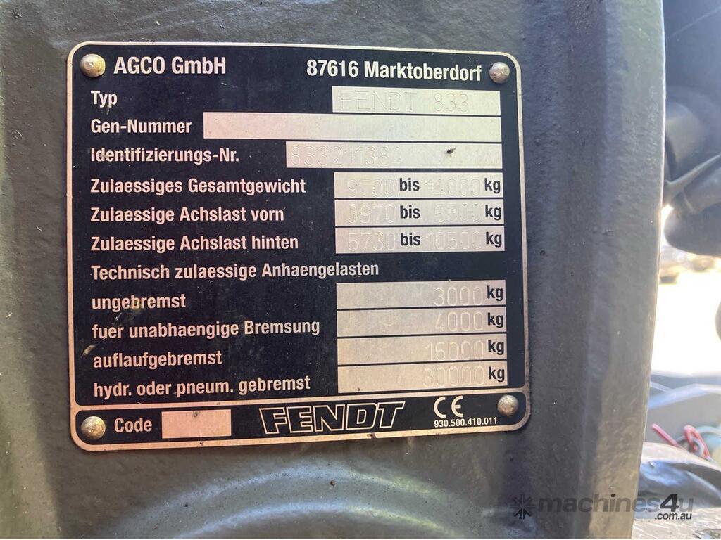 CP: CIRCA 2013,Fendt,822 S4 Vario,Tractor,6 Cyl,Diesel,Odometer not visible,10563 (Hrs. Showing on Hour meter),Colour: Green,Rego. No: I35GN TAS,Serial No: ,Sold with No Plates,WOVR Status: WOVR N/A,Incident Type: Impact