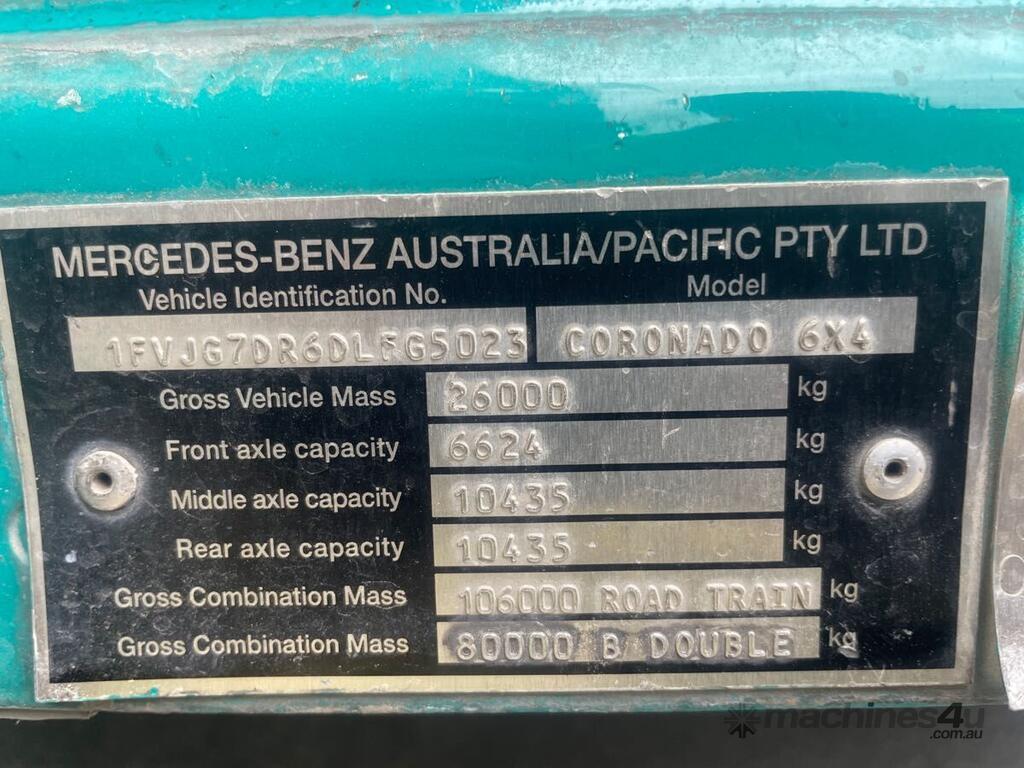 CP: 02/2013,Freightliner,FLX Coronado,6x4 Prime Mover,Automatic,Airbag Suspension,6 Cyl,Diesel,Odometer not visible,Hourmeter not visible,Colour: Green,Rego. No: NP(298SUJ), Unregistered,VIN: 1FVJG7DR6DLFG5023,GVM: 26000,GCM: 106000,Sold with No Plates,WOVR Status: WOVR N/A