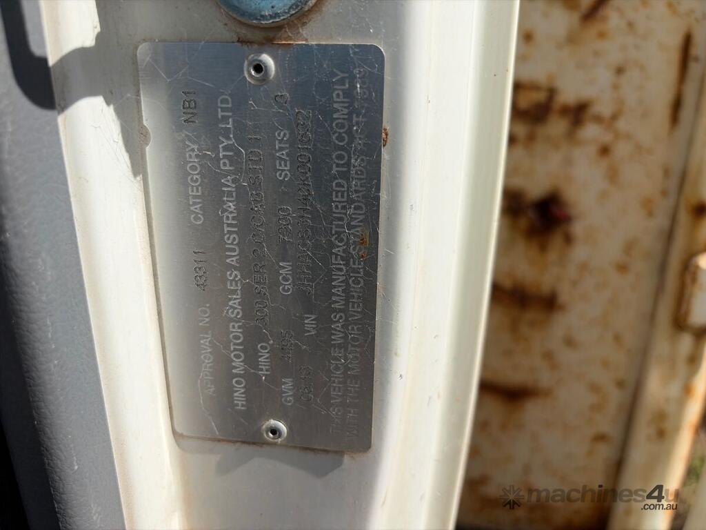 CP: 06/2013,Hino,300 series,Table Top (Day Cab),Automatic,leaf,4 Cyl,Diesel Turbo,Odometer not visible,Hourmeter not visible,Colour: White,Rego. No: NP(1EHU144), Unregistered WA,VIN: JHHACS3H40K001632,GVM: 4495,GCM: 7300,Sold with No Plates
