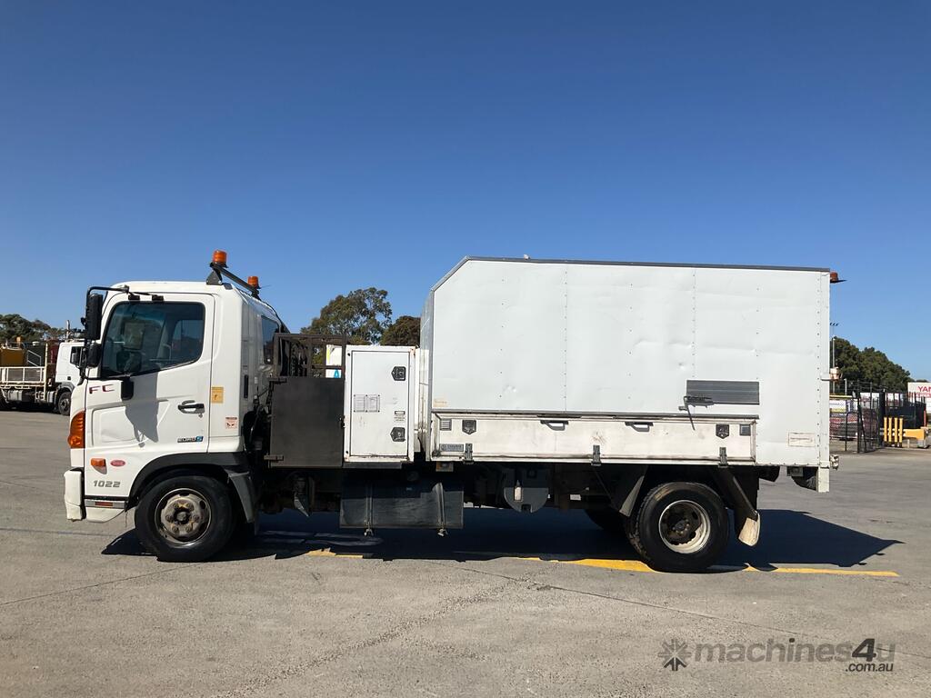 CP: 02/2013,Built: 02/2013,Hino,FC 500 1022,Chipper Tipper Day Cab,Automatic,Leaf Spring Suspension,Engine #: JO7ETR10758,6400 CC,6 Cyl,Diesel,190603 (Kms. Showing on Odometer),Hourmeter not visible,Colour: White,Rego. No: NP(ZQK196), Unregistered VIC,VIN: JHDFC7JJMXXX10167,Key No: 171,Length: 7445 m,GVM: 10400,GCM: 16000,Sold with No Plates,Key No: 171