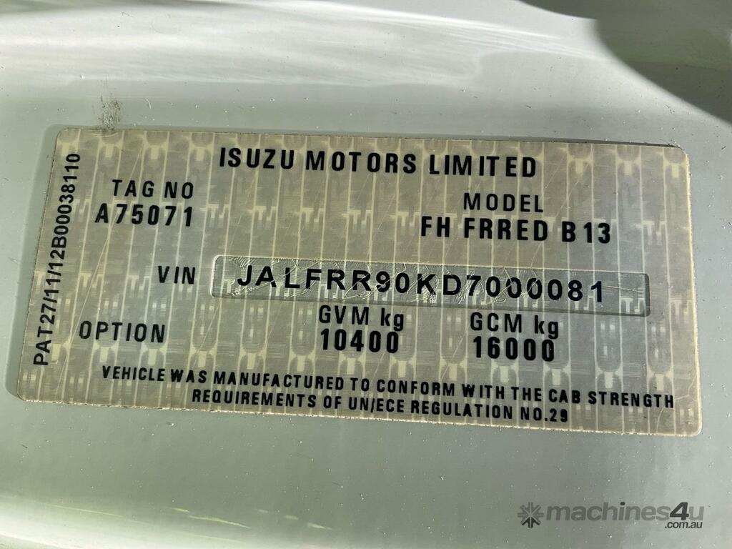 CP: 10/2013,Isuzu,FRR500,Refrigerated Pan-Tech,Manual,Spring,4 Cyl,Diesel,Turbo,6 Gears,Odometer not visible,Hourmeter not visible,Colour: White,Rego. No: NP(BX06YD), Unregistered NSW,VIN: JALFRR90KD7000081,GVM: 10400,GCM: 16000,Sold with No Plates,WOVR Status: Repairable Write-Off,Incident Type: Impact