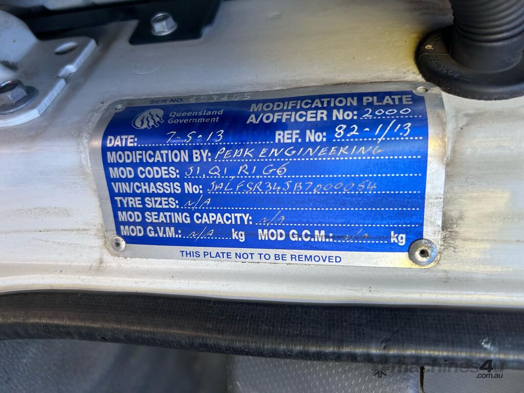 CP: 01/2013,Isuzu,FSR 700,Crane Truck (Table Top),Automatic,Spring,Diesel,426481 (Kms. Showing on Odometer),21645 (Hrs. Showing on Hour meter),Colour: White,Rego. No: NP(443TAV), Unregistered,VIN: JALFSR34JB7000054,Key No: 315,GVM: 12000,GCM: 15000,Sold with No Plates,Key No: 315
