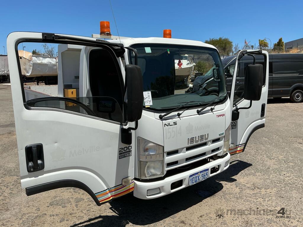 CP: 09/2013,Isuzu,NLS 200 Short,Tipper,Manual,Leaf Springs Suspension ,4 Cyl,Diesel Turbo,5 Gears,131160 (Kms. Showing on Odometer),Hourmeter not visible,Colour: White,Rego. No: 1EQX565 WA,VIN: JAANLS85FB7100061,Key No: 154,GVM: 4500,GCM: 7000,Sold with No Plates,Key No: 154