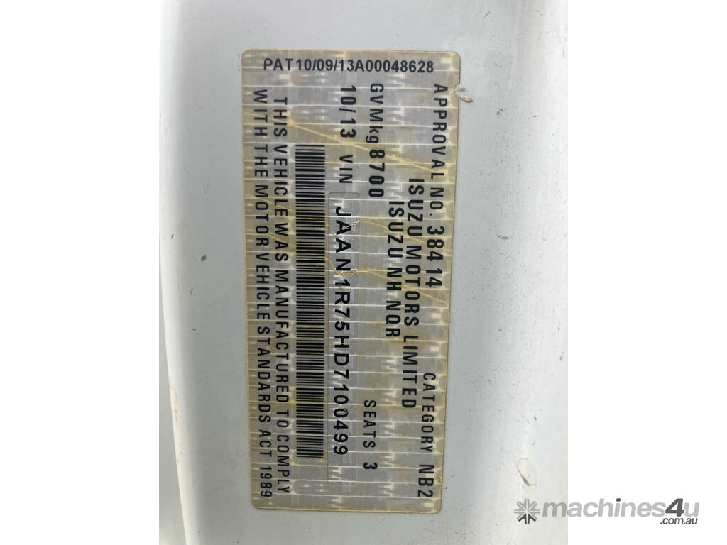 CP: 10/2013,Isuzu,NQR450 MWB,Service Body,Manual,Spring,4 Cyl,Diesel,Turbo,216163 (Kms. Showing on Odometer),Hourmeter not visible,Colour: White,Rego. No: CA80ES NSW,VIN: JAAN1R75HD7100499,Length: 6.2 m,GVM: 8700,GCM: 12200,Sold with No Plates