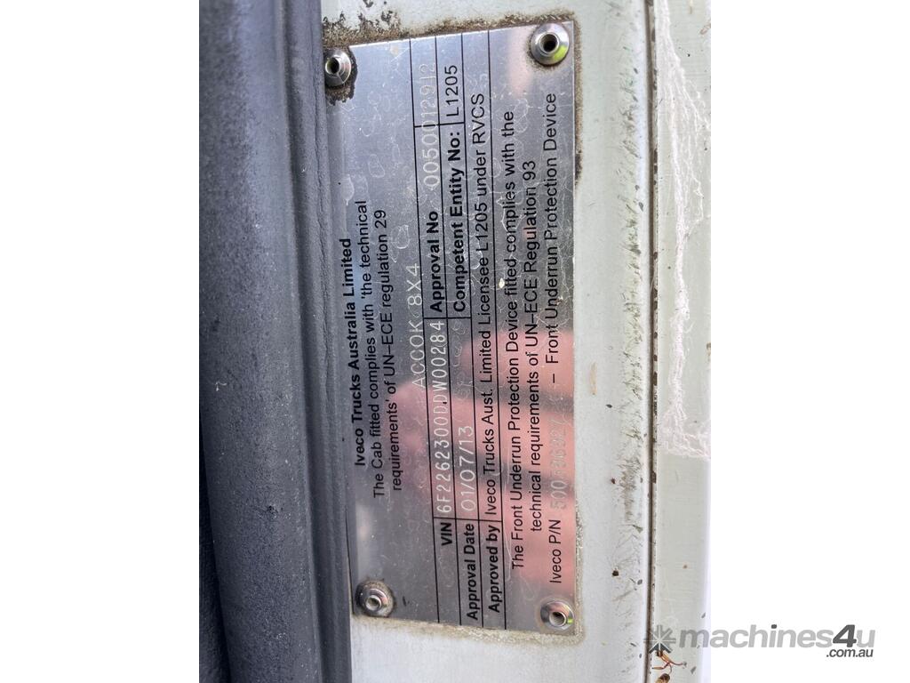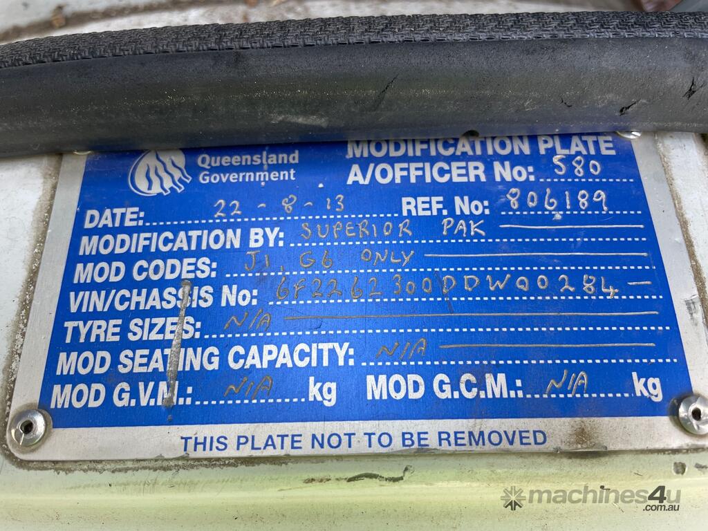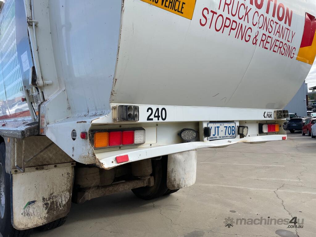CP: 07/2013,Iveco,ACCO 2350,Front Loading Garbage Compactor,Automatic,Airbag,Cummins ISL,6 Cyl,Diesel,Turbo,186489 (Kms. Showing on Odometer),24933 (Hrs. Showing on Hour meter),Colour: White,Rego. No: NP(YJT70B), Unregistered ACT,VIN: 6F2262300DDW00284,Length: 9.7 m,GVM: 30000,GCM: 30000,Sold with No Plates