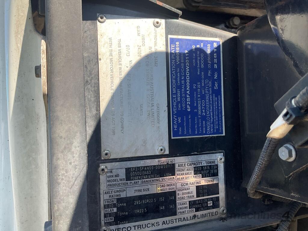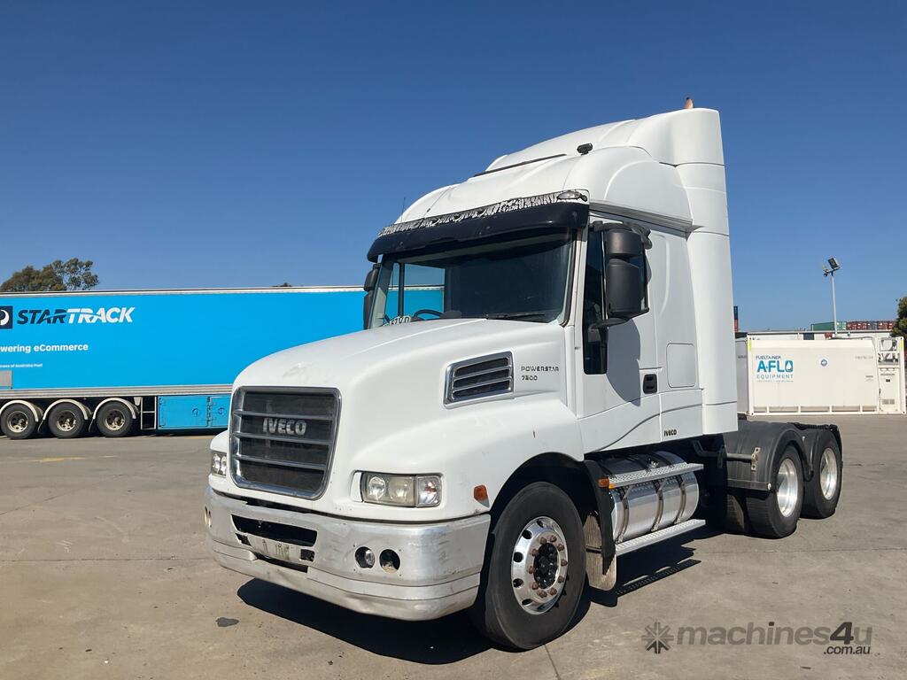 CP: 07/2013,Iveco,Powerstar 7200,Prime Mover,Automatic,Air Bag Suspension,Engine #: 79619745,Cummins ISX,6 Cyl,Diesel,595044 (Kms. Showing on Odometer),Hourmeter not visible,Colour: White,Rego. No: NP(XV57V0), Unregistered VIC,VIN: 6F2SFAN00DDW30117,Key No: 55,GVM: 24700,GCM: 90000,Sold with No Plates,Key No: 55