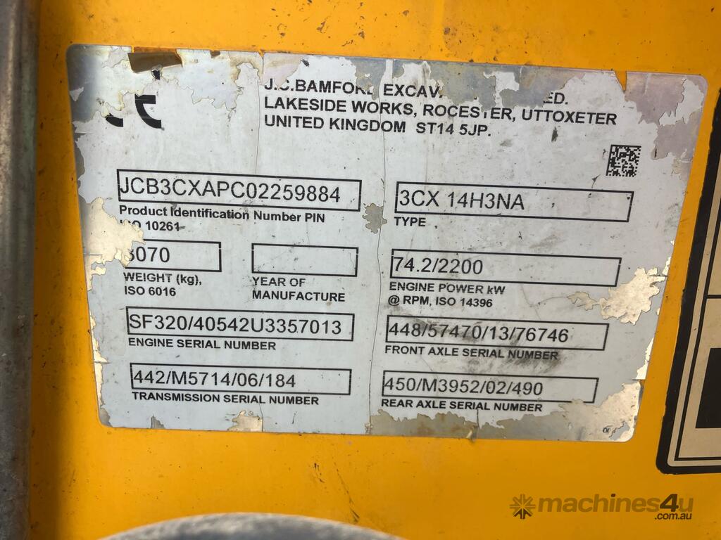 CP: CIRCA 2013,JCB,3CX 14H3NA,4WD Backhoe,Diesel,Odometer not visible,3189 (Hrs. Showing on Hour meter),Colour: Yellow,Unregistered,Serial No: JCB3CXAPC02259884,Sold with No Plates