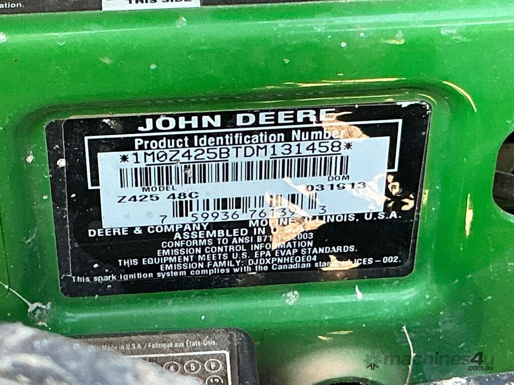 CP: 03/2013,John Deere,Z225 EzTrak,Ride On Mower/Slasher,Odometer not visible,0 (undefined),Colour: Green,Unregistered,VIN: 1M0Z425BTDM131458,Sold with No Plates,WOVR Status: WOVR N/A,Incident Type: Fire