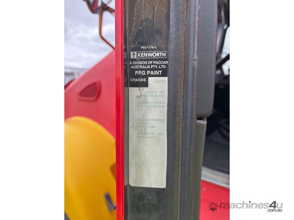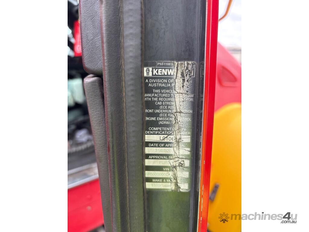 CP: 11/2013,Kenworth,T359,Prime Mover Sleeper Cab,Automatic,Diesel,Odometer not visible,Hourmeter not visible,Colour: Red,Rego. No: NP(1AF8GS), Unregistered VIC,VIN: 6F5000000DA450874,Length: 22 ft,GVM: 24000,Sold with No Plates