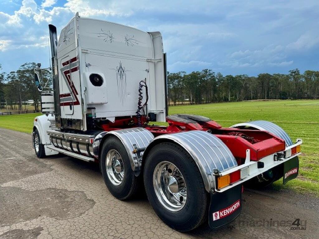 2013 Kenworth T909, Cummins X15 crate engine, 18sp, 50-inch bunk, dual X locks, 97T rated, 7.3T front axle, 4.1 ratio, 5790mm wheelbase, comes workshop checked, serviced and complete with NSW RW for $199,000+GST