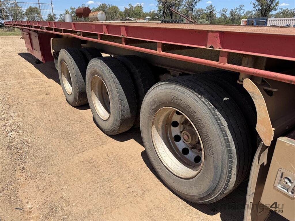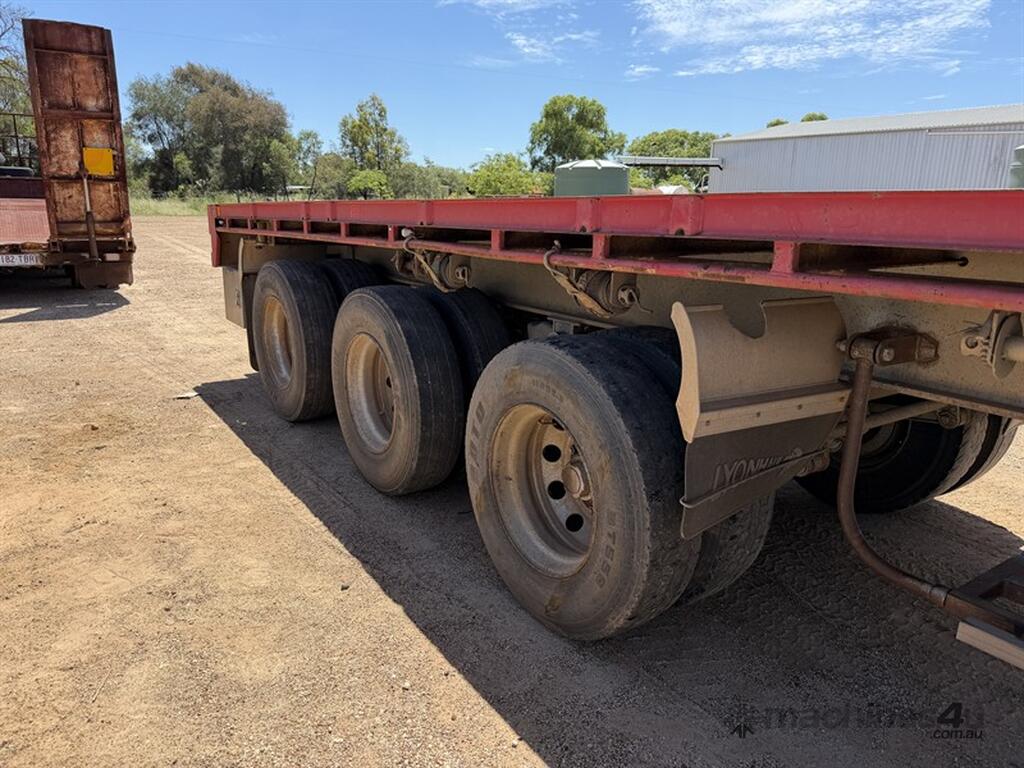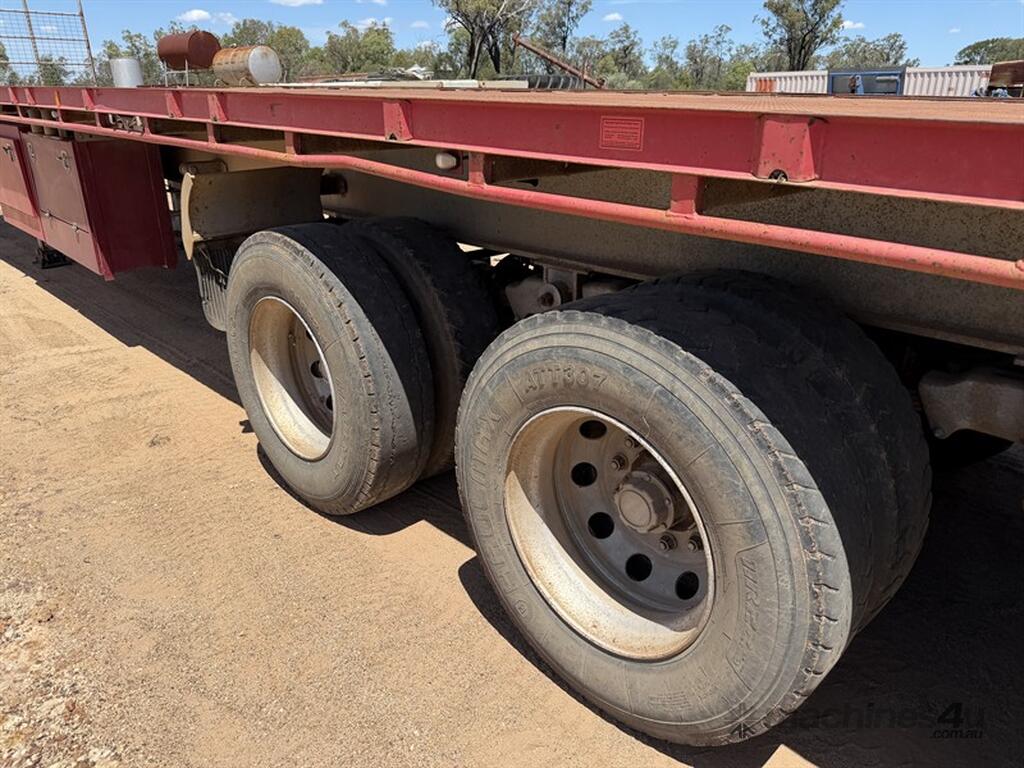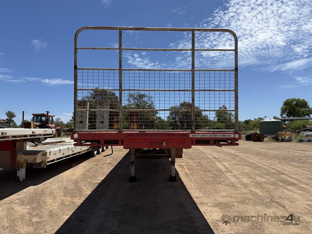 2013 Krueger Flat Top 45ft Trailer. Front gates, tool side boxes, 4 x container pins, gate holders, on springs, gate rack and full set of gates, timber box, 10 stud, York axles, VIN No. 6FH7105AADM014781. Available at MRE Auctions "Pye Reduction Sale" Clearing Sale. Contact Grady Sinclair on . Located Miles, QLD.