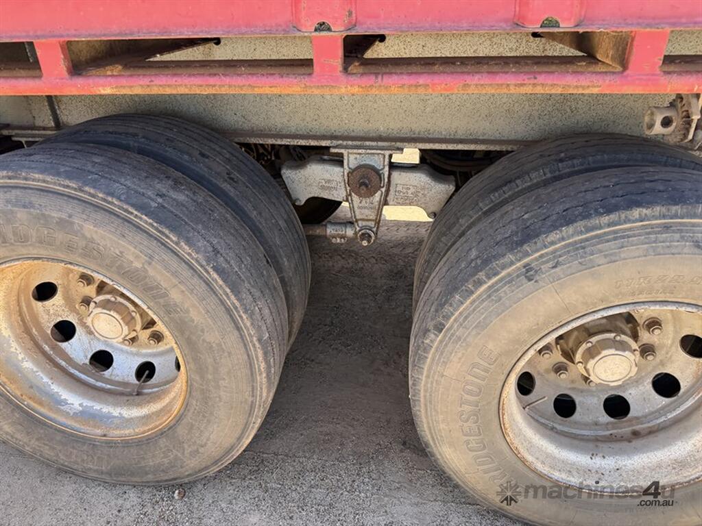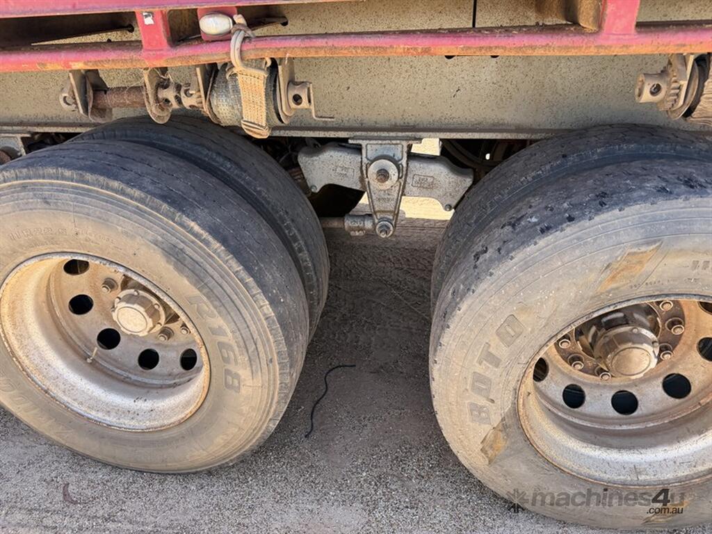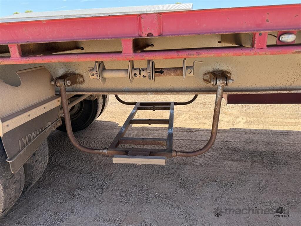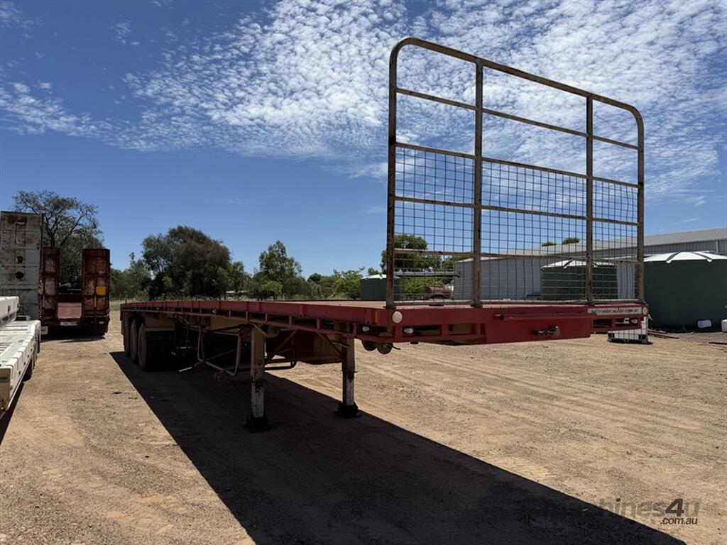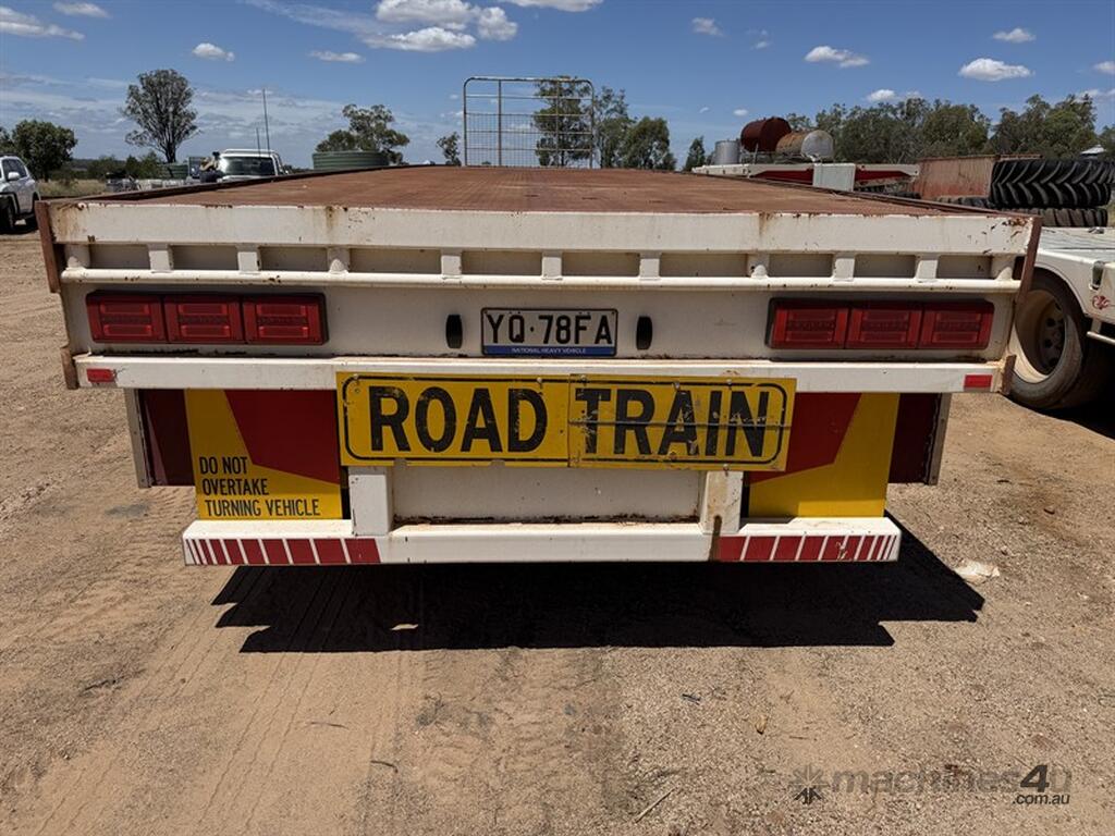 2013 Krueger Flat Top 45ft Trailer. Front gates, tool side boxes, 4 x container pins, gate holders, on springs, gate rack and full set of gates, timber box, 10 stud, York axles, VIN No. 6FH7105AADM014781. Available at MRE Auctions "Pye Reduction Sale" Clearing Sale. Contact Grady Sinclair on . Located Miles, QLD.