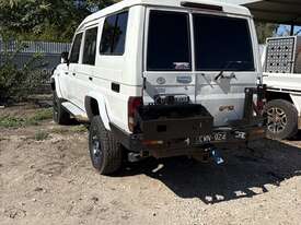 2013 LANDCRUISER TROOP CARRIER. VIN: JTERV71J. Registration CWN924 (VIC) expires October 2025. New 5 inch lift and rims. ARB steel bullbar. Suspension upgrade. Snorkel. UHF. Driving lights. Tow bar. Spare tyre carrier and jerry can holder. Located Walgett, NSW
