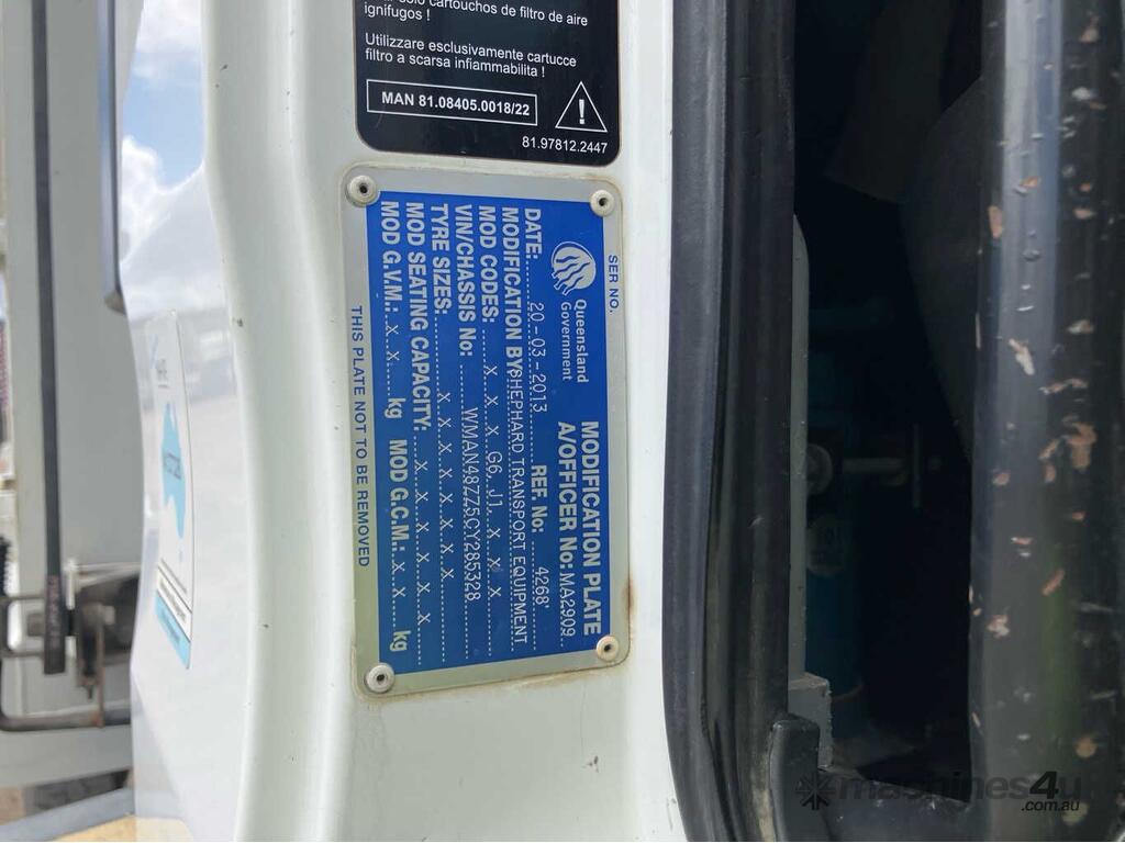CP: 05/2013,MAN,TGM 26.340,Tipper,Automatic,Spring,6 Cyl,Diesel,Odometer not visible,Hourmeter not visible,Colour: White,Unregistered,VIN: WMAN48ZZ5CY285328,GVM: 26000,GCM: 27500,Sold with No Plates,WOVR Status: WOVR N/A