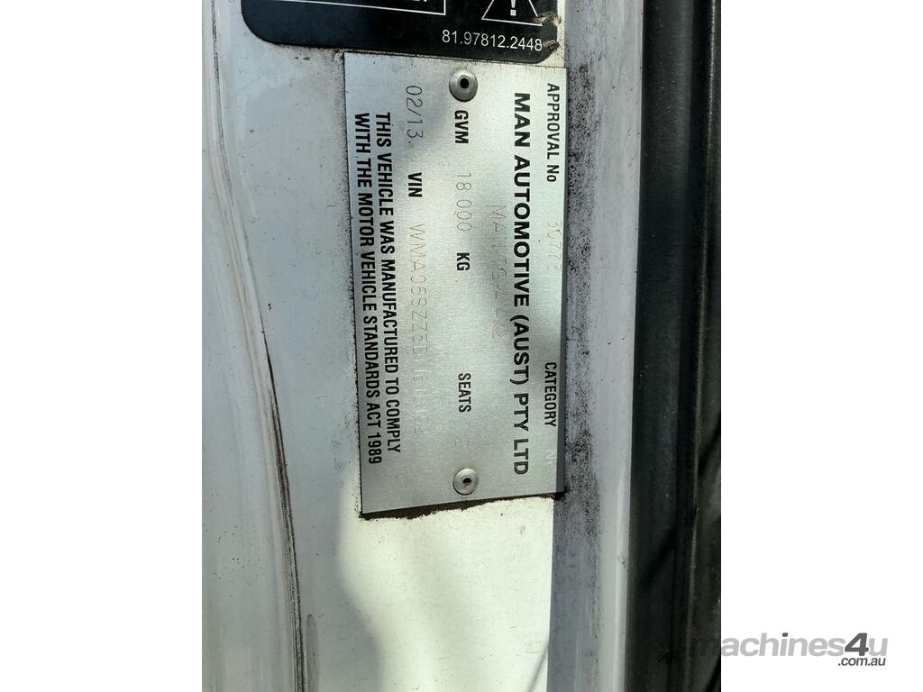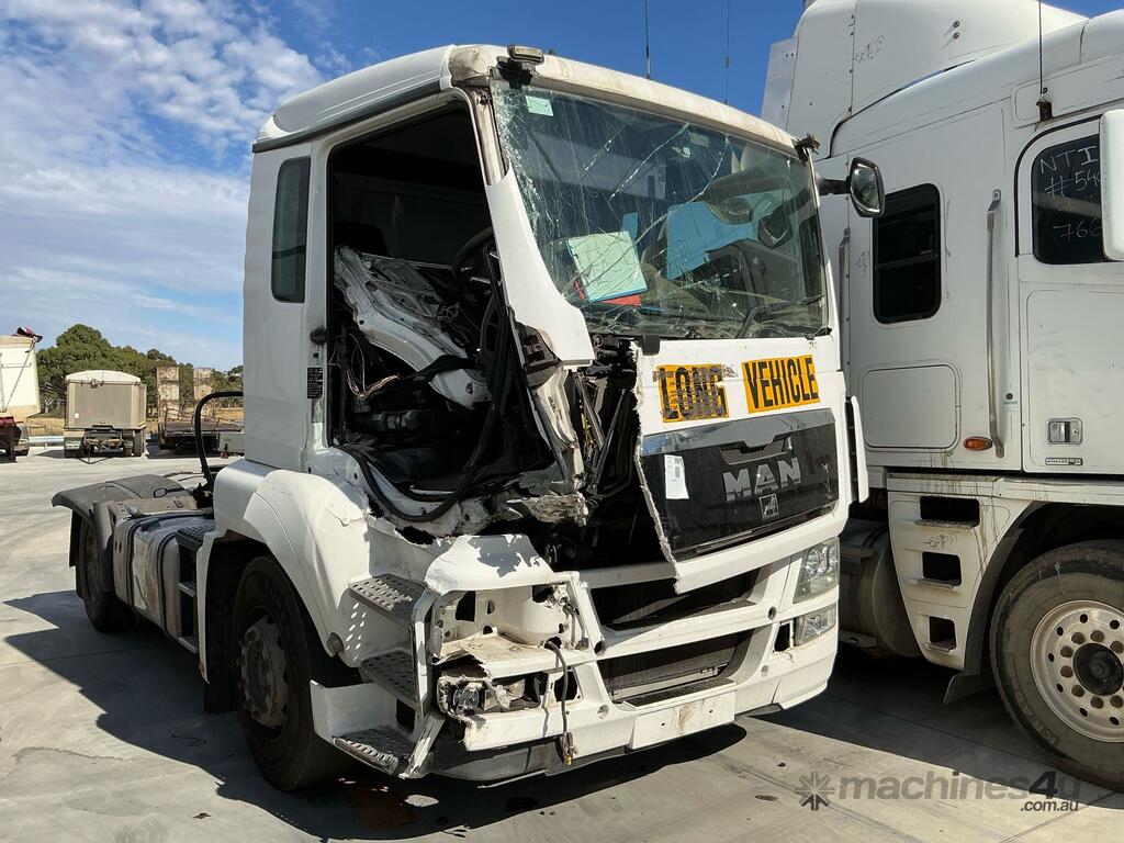 CP: 02/2013,MAN,TGS 18.360,Prime Mover,Automatic,6 Cyl,Diesel,Odometer not visible,Hourmeter not visible,Colour: White,Rego. No: NP(XW70VL), Unregistered VIC,VIN: WMA06SZZ5DM616192,Length: 5 m,GVM: 18000,Sold with No Plates,WOVR Status: WOVR N/A,Incident Type: Impact