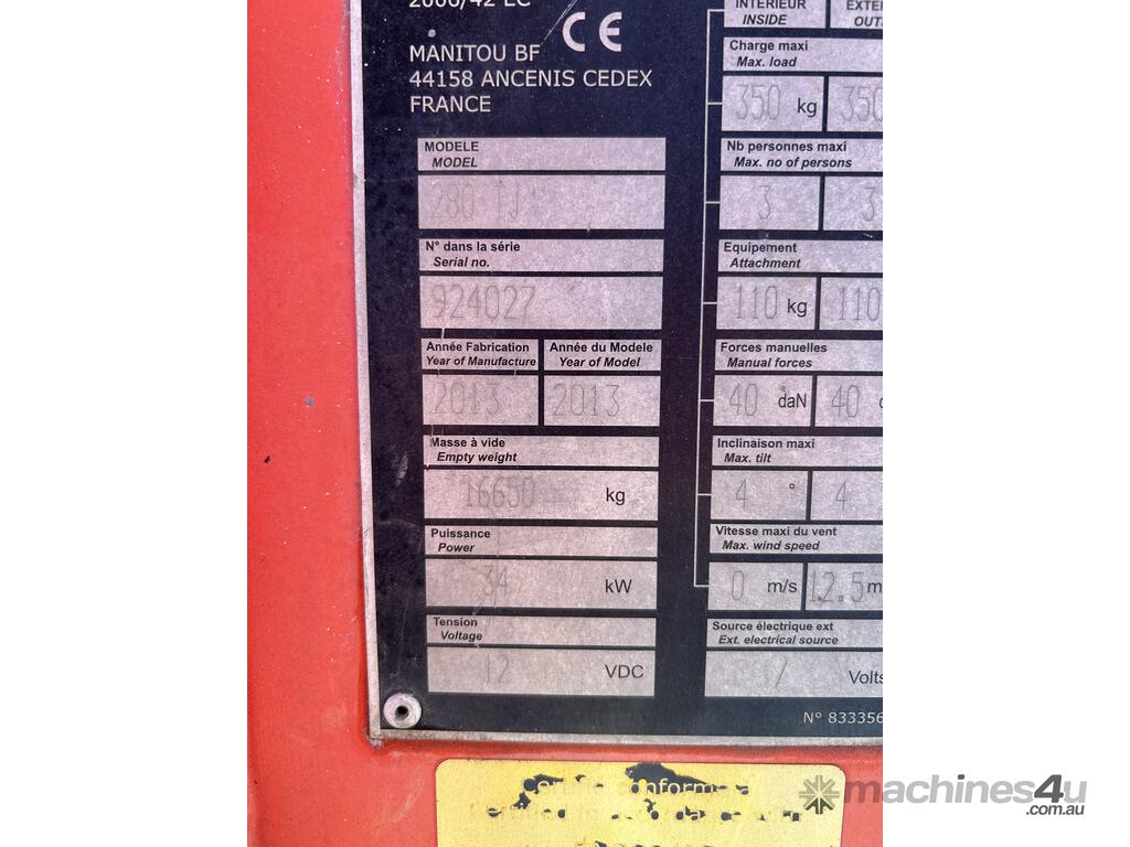 2013 Manitou 280TJ Straight Boom :      $80,500 AUD($88,550 Inc. GST)