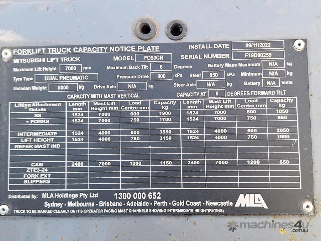 2013 Mitsibushi Diesel 5T Forklift :      $34,000 AUD($37,400 Inc. GST)