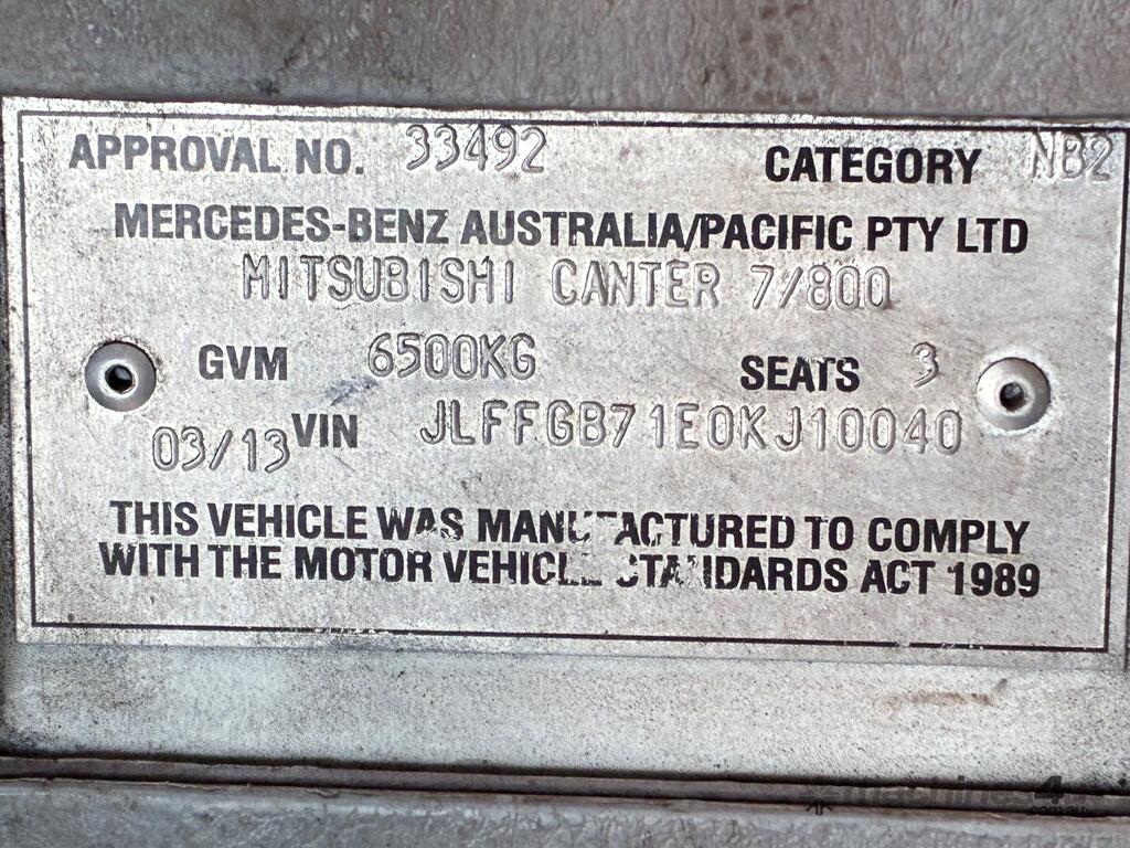 CP: 03/2013,Mitsubishi,Canter,Table Top,Manual,Spring ,4 Cyl,Diesel,5 Gears,146205 (Kms. Showing on Odometer),Hourmeter not visible,Colour: White,Rego. No: CE17AP NT,VIN: JLFFGB71E0KJ10040,Length: 6.25 m,GVM: 6500,GCM: 10000,Sold with No Plates