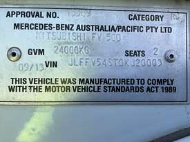 CP: 09/2013,Mitsubishi,FV 500,Crane Truck (Table Top),Automatic,Airbags ,6 Cyl,Diesel Turbo,138363 (Kms. Showing on Odometer),5789 (Hrs. Showing on Hour meter),Colour: White,Rego. No: XP38CN NSW,Rego expiry: 11/11/2025,VIN: JLFFV54ST0KJ20003,Key No: 289E,Length: 12 undefined,GVM: 24000,GCM: 50000,Sold with No Plates,Key No: 289E