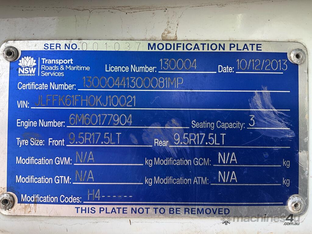 CP: 10/2013,Mitsubishi Fuso,Fighter 1024,Service Body,Manual,Spring ,Engine #: 6M60177904,6 Cyl,Diesel Turbo,6 Gears,309518 (Kms. Showing on Odometer),5751 (Hrs. Showing on Hour meter),Colour: White,Rego. No: BX76DP NSW,Rego expiry: 05/01/2026,VIN: JLFFK61FH0KJ10021,Key No: 430E,Length: 7.7 m,GVM: 10400,GCM: 16000,Plates to All,Key No: 430E