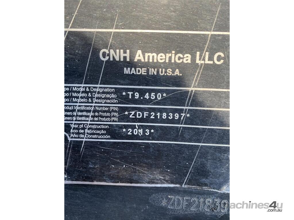 2013 NEW HOLLAND T9 450 HD TRACTORS - 2013 build, 450HP, 4WD tractor. 9,205 hours at time of inspection, 3m centres. tyres good. Cabin good, Trimble screen. Light kit, 3PL, quick hitch, 4 remotes. Chassis No ZDF218397. Located Bellata NSW.