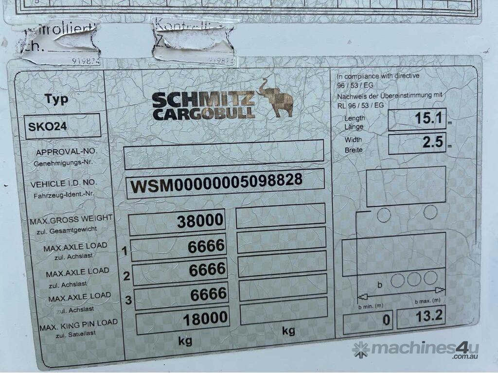 CP: 09/2013,Schmitz,ST3,Tri Axle Pantech Trailer,681951 (Kms. Showing on Hubometer),Colour: Black,Unregistered,VIN: WSM8828,Sold with No Plates