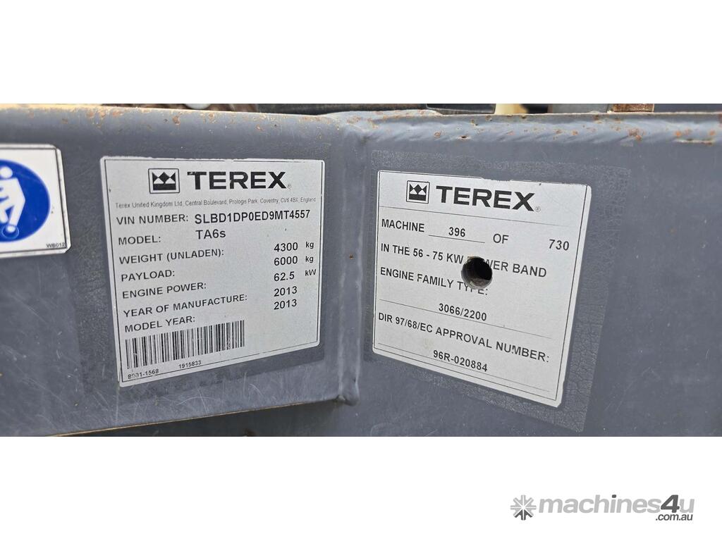 Used Terex Site Dumper for sale - 2013 Terex TA6S :      $35,000 AUD($38,500 Inc. GST)