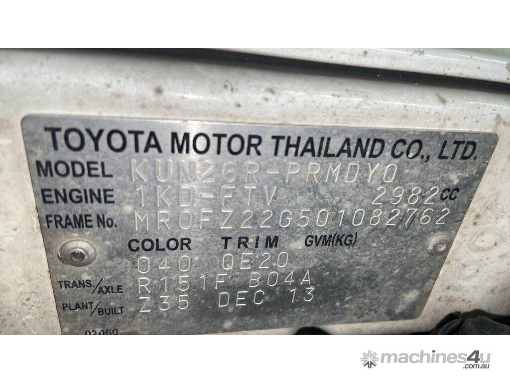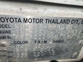 2013 Toyota KUN26R HiLux 4x4 SR 4 Pick-Up 5sp Man 3.0L 3000cc 4cyl T/Diesel 2011