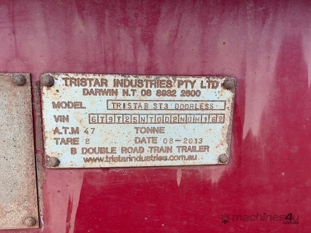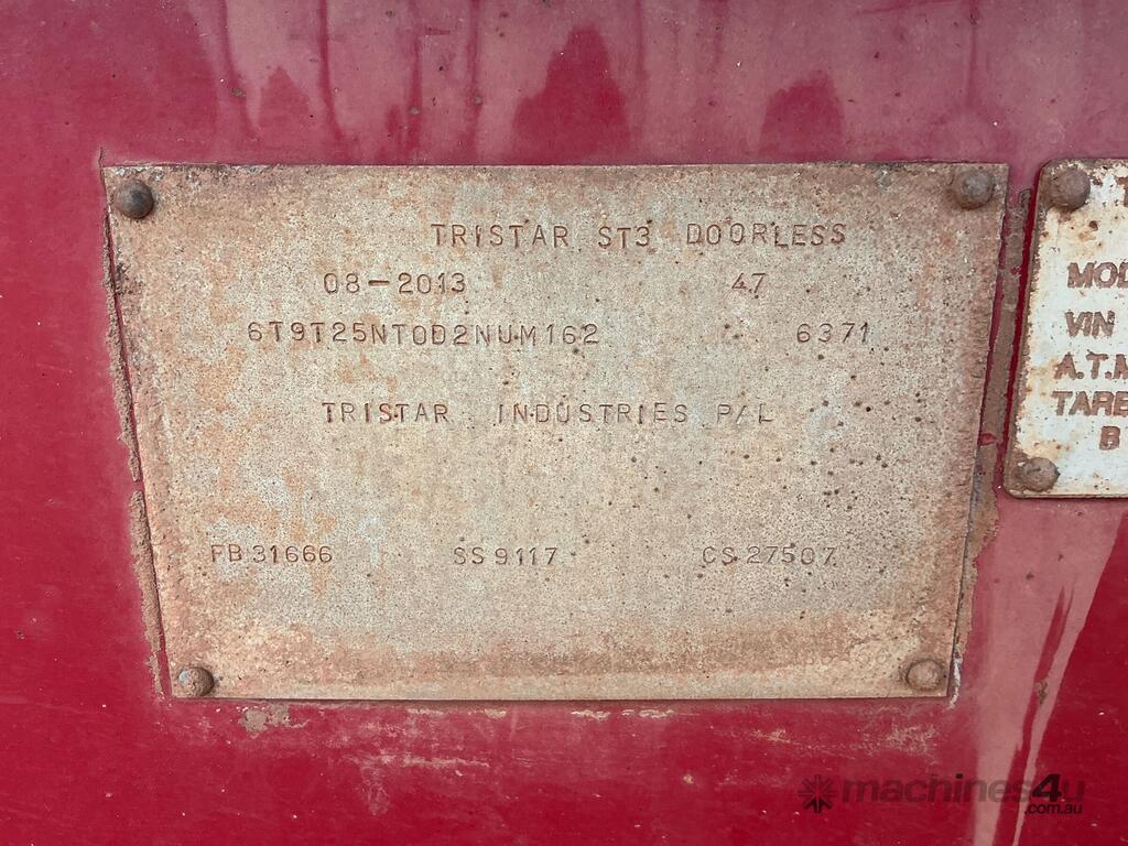 CP: CIRCA 2013,Built: 08/2013,Tristar,ST3,Tri Axle Side Tipper,Hubometer not visible,Colour: Red,Rego. No: NP(YB12DY), Unregistered QLD,VIN: 6T9T25NT0D2NUM162,Sold with No Plates,WOVR Status: Repairable Write-Off,Incident Type: Impact