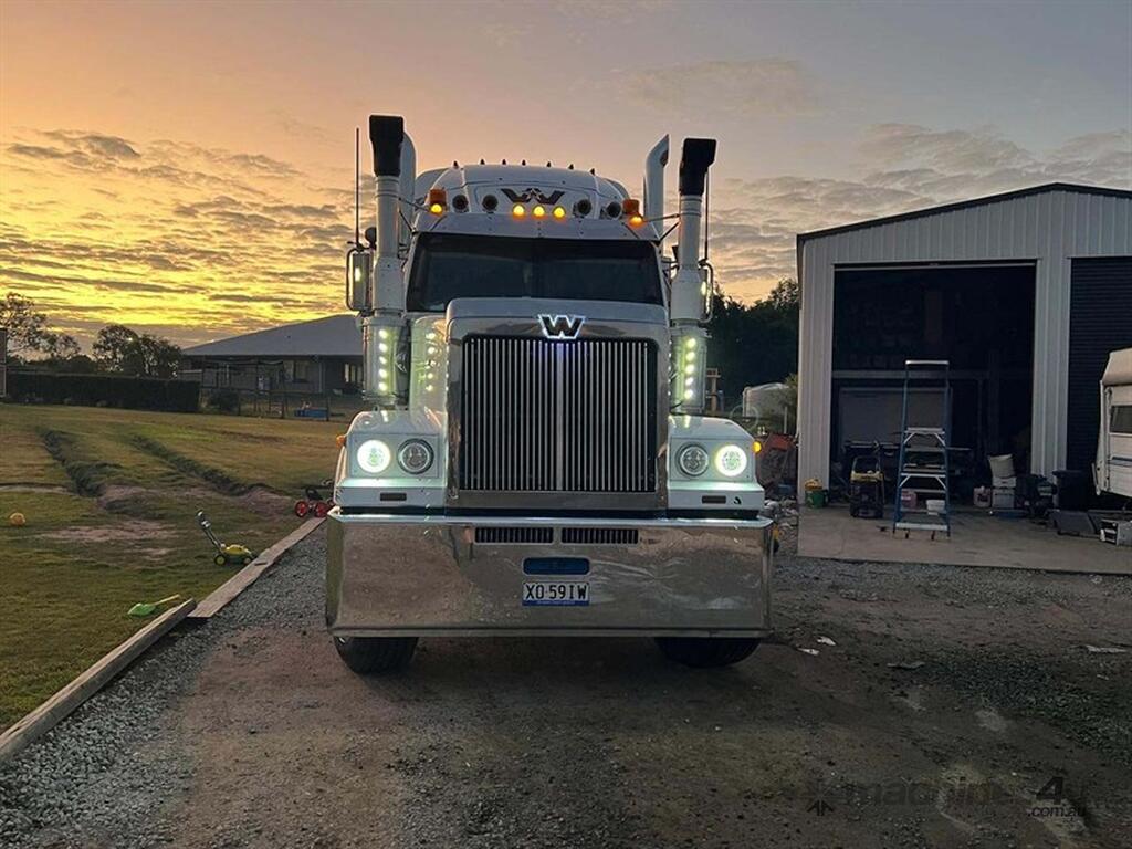 2013 WESTERN STAR 4900FXC PRIME MOVER 107 T road train rated. Truck has had extensive work done including New penske crate motor 50,000 km ago, new cooler radiator and all hoses donel done at the same time all new rear end done, chassis painted and low mount stainless gaurds,.Tidy interior clean truck only selling as it is surplus to their needs, located at Hatton Vale Qld, available at MRE online auction.