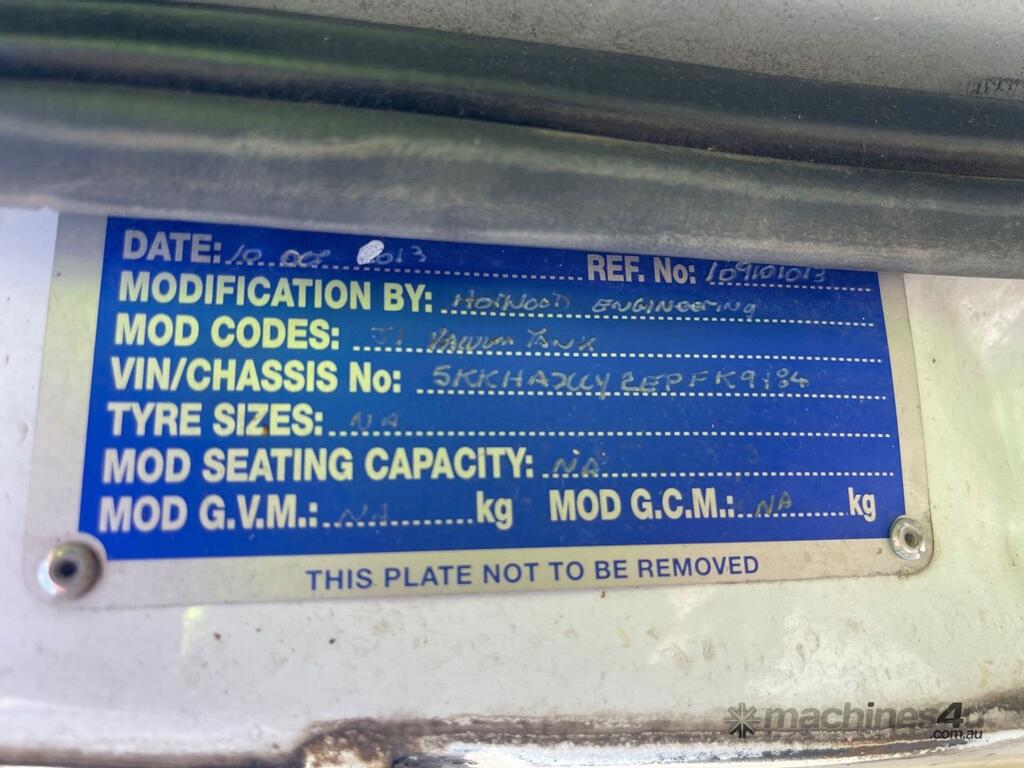 CP: 06/2013,Built: 02/2013,Western Star,4764SCX,Vacuum Truck,Manual,Airbag,Engine #: 73496089,Cummins ISL EURO V,6 Cyl,Diesel,18 Gears,516998 (Kms. Showing on Odometer),19351 (Hrs. Showing on Hour meter),Rego. No: NP(450THT), Unregistered QLD,VIN: 5KKHAXCY2EPFK9184,Key No: T8,GVM: 24500,GCM: 40000,Sold with No Plates,Key No: T8