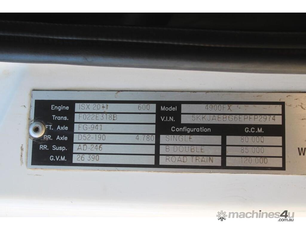 2013 Model, 24000 Hours Showing, 737539 km Showing, Cummins ISX 600HP Engine, 18 Speed Auto Trans, Air Bag Rear Suspension, 120T Road Train Rated, PTO Hydraulics, Tipper controls, Engine Rebuilt Approx 30,000km Ago
