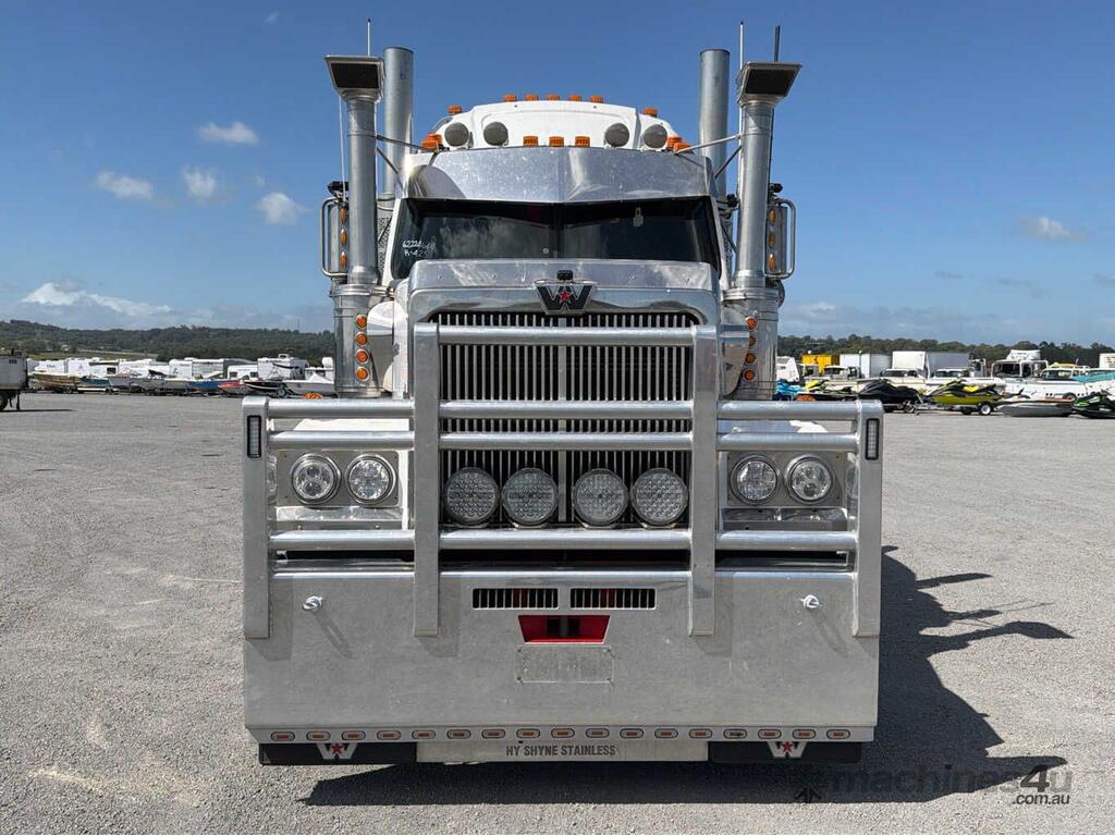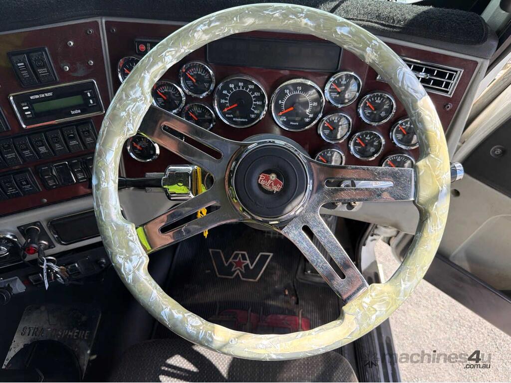 CP: 08/2013,Western Star,4900 FXT Stratosphere,Prime Mover Sleeper Cab,Manual,Airbag,Cummins ISX,6 Cyl,Diesel Turbo,18 Gears,330904 (Kms. Showing on Odometer),36217 (Hrs. Showing on Hour meter),Colour: White,Rego. No: NP(RAMTPT), Unregistered NSW,VIN: 5KKJAEBGXEPFK0246,Key No: 42S,Length: 8.4 m,GVM: 27400,GCM: 106000,Sold with No Plates,Key No: 42S